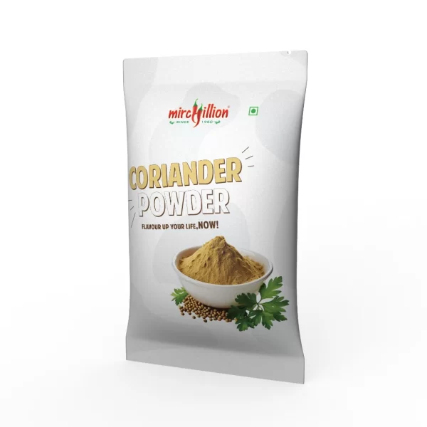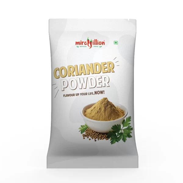 Mirchillion presents this coriander powder which comes with a shelf life of 12 months. This product has no artificial colors and no preservatives. Store in a cool and a dry place. Its leaves and fruits have a recognizable and pleasant aroma and are commonly used raw or dried for culinary application organic. Coriander powder is pulverized and grinded from best organic coriander seeds in whole form to impart great aroma and taste. Like many spices, it contains antioxidants which can delay or prevent the spoilage of food seasoned with this spice. Before packing it is cooled and checked for quality to ensure its purity and hygiene. Organic coriander powder or dhaniya powder is largely used to create delicious dishes such as bhindi masala, matar masala, mushroom curry, lauki-kofta and many more