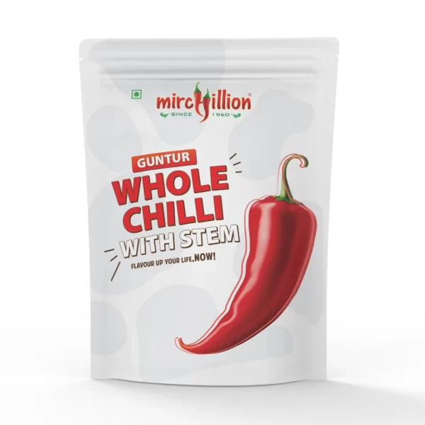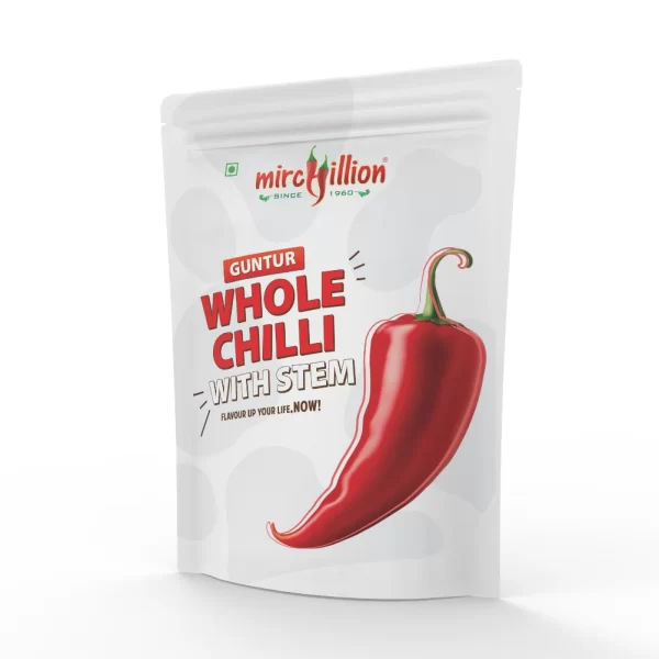 Mirchillion Guntur Red Chilli Whole with stem – 500gms saver pack