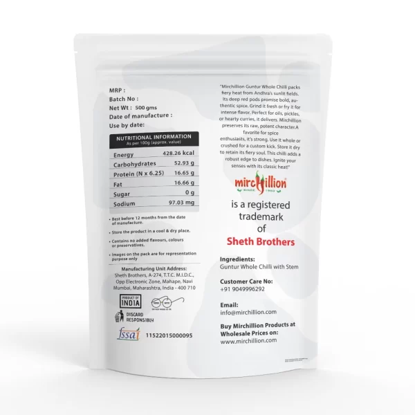 • Manufacturer – Sheth Brothers – Mirchillion